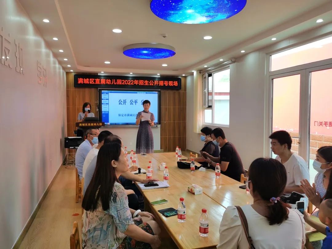 2022年8月2日上午,滿城區直屬幼兒園采取現場報名公開搖號的方式進行招生,各級領導和工作人員齊聚滿城區直屬幼兒園,在區紀委駐教體局紀檢組工作人員、區教體局工作人員、區司法局工作人員和家長代表的見證下,由家長代表現場隨機搖號產生錄取結果,120名幼兒進入擬錄取階段。